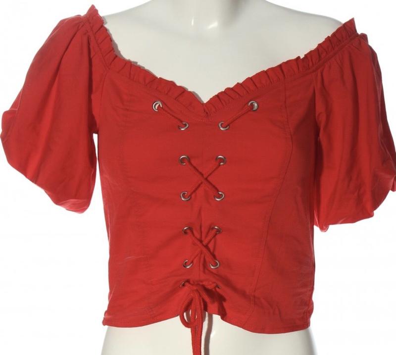 Блуза з об‘ємними , короткими рукавами , із завязками , в ідеальному стані . Розмір S, M