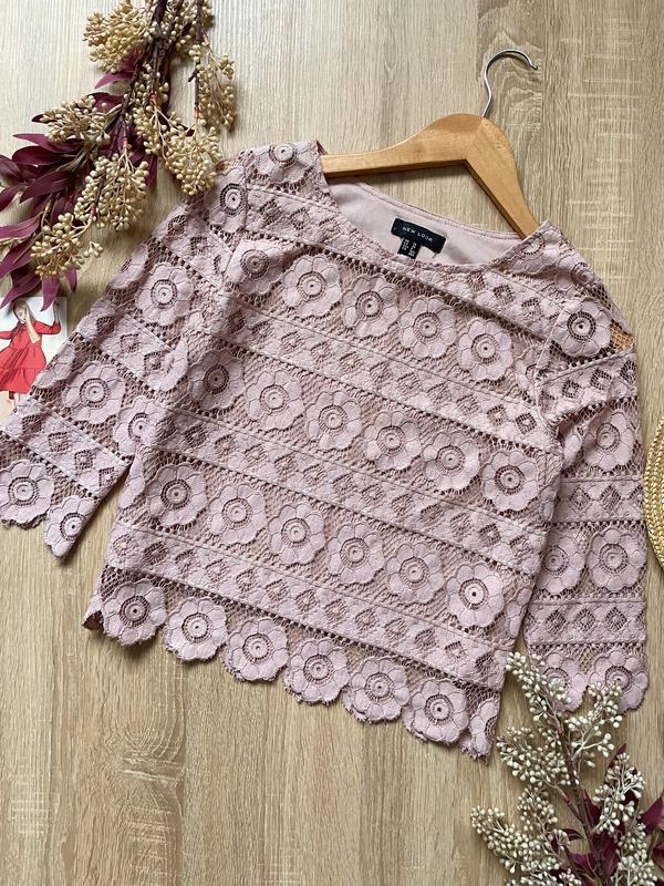 Вкорочена блузка пудрового кольору кружевна мереживна на підкладці