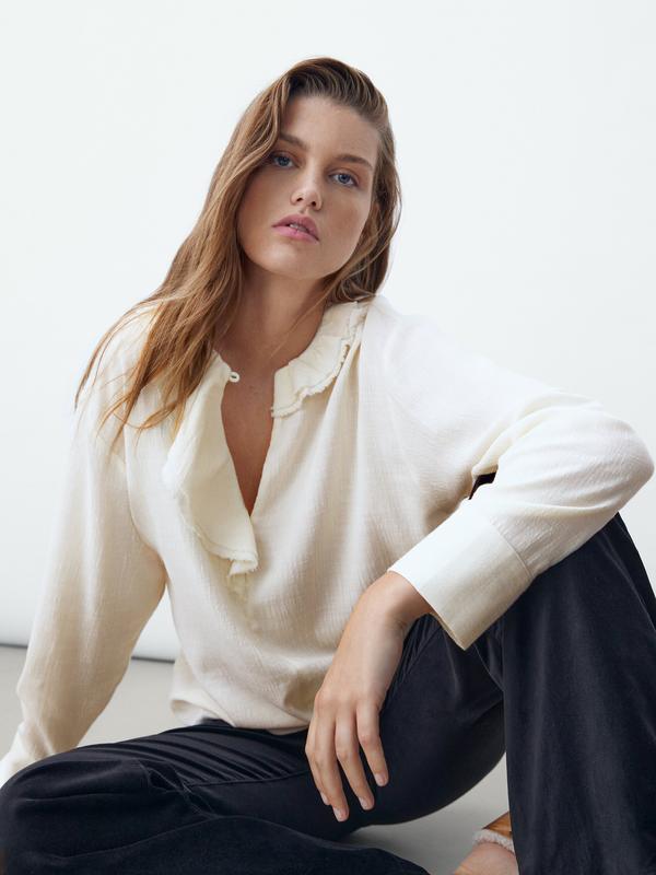 Блуза з колекції відомого іспанського бренду ! Ідеальне поєднання якості і елегантного стилю! Колір ніжно- молочний! Дуже приємна на дотик! Склад тканини: 88 % бавовна , 12 % вовна В наявності розміри XS, M .
