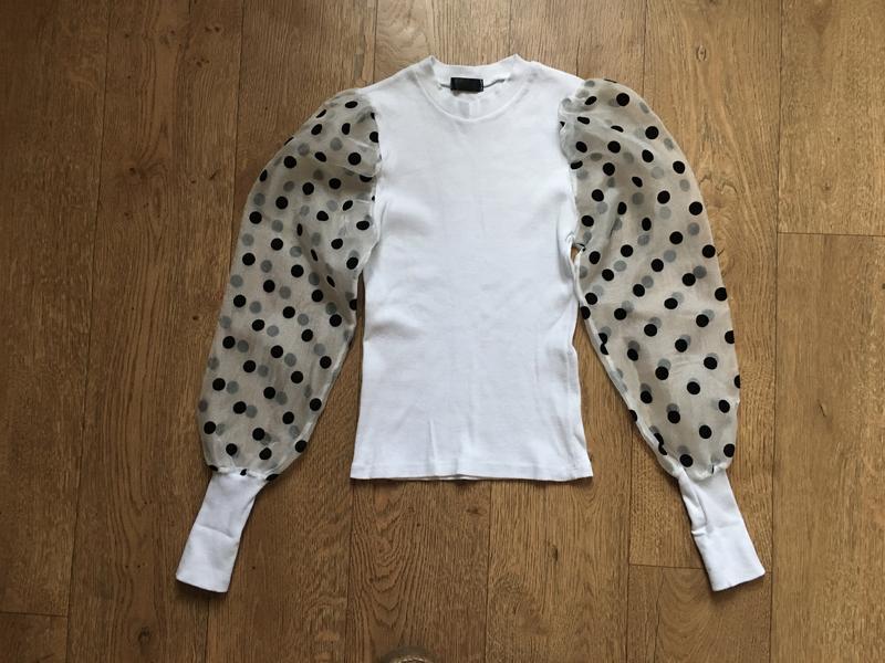 Блуза в рубчик с фатиновыми рукавами фонариками Rebellious Размер S - XS Длина длина 52 см, плечи 31, пог 32, рукав 64 см 179 грн