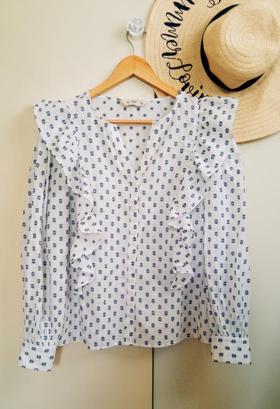 Прекрасная блуза с воланами и пышным рукавом. Нюанс на последнем фото,в носке не видно ПОГ 51 ПОТ 47 длина по середине спинки 59