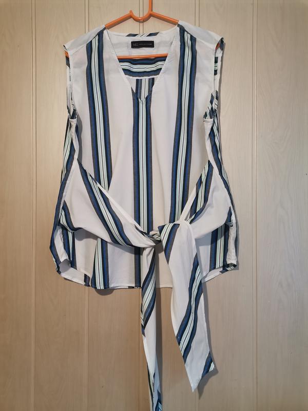 Блуза з завязкою, як нова Цупкий котон, цікавий принт, та завязка. Можна завязати на власний смак. Орієнтуйтесь по замірах Довжина по спинці -65 Пог - 55см Довжина однієї завязки 76см
