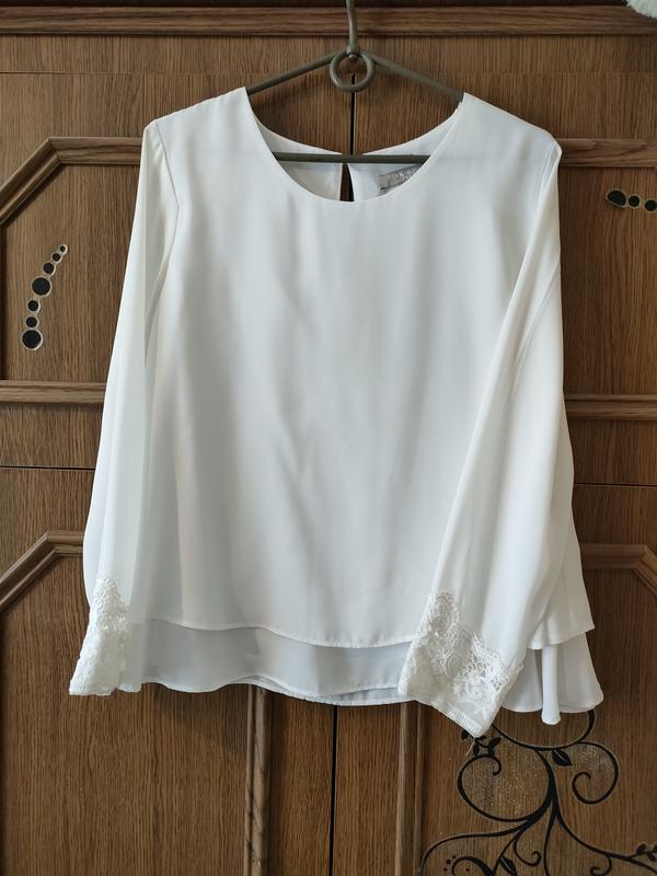 ідеальна біла блузка, пошита трапецією , на рукавах дороге мереживо, прекрасно лягає по фігурі