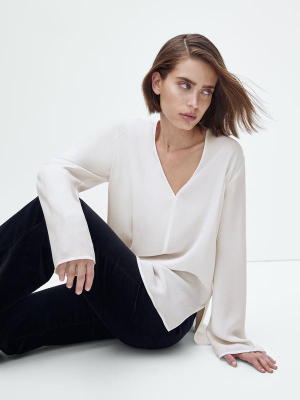 Струящаяся блузка с V-образным вырезом Massimo Dutti. 100% вискоза Размер М.( полномерный) Стан: есть нюанс на рукаве