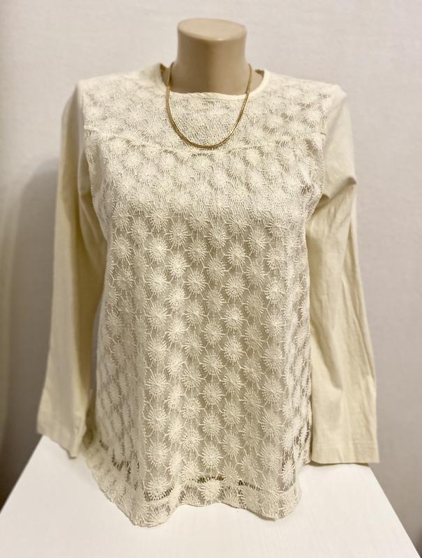 Гарна кофтинка молочного кольору, перід подвійний трикотаж і ажур, спинка трикотажна. Класно виглядає на тілі, в реалі краща ніж на фото. Склад котон, виробництво Португалія. Заміри: по грудях 42 см., довжина 56 см. Дивіться всі мої оголошення, є багато цікавого! Відправляю зручним для вас перевізником.