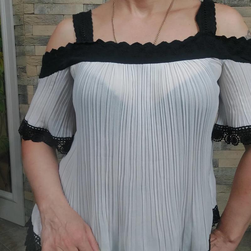 Блуза , хорошо сидит по фигуре Замеры: грудь 43 см тянется Длиння 58 см Состряние хорошее Одето на М , пойдет и на С