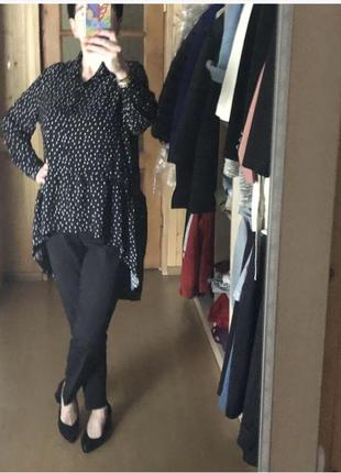Блузка-настій.Перед значно коротший,як зад.При ходьбі красиво і романтично «танцює».Якщо потрібно фото на тілі,чи додаткові заміри-пишіть.Заміри:довжина спереду 68 см(+-2 см),довжина ззаду 98 см(по центру),півкружність грудей 60 см,довжина рукава 62 см.Повірте-вона неймовірна!