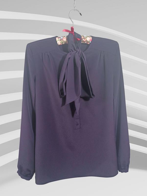 Приємна на дотик блузка, прямого покрою, дуже гарного, глибокого темно-фіолетового кольору (фото на різних пристроях може не передавати реальний відтінок) .. Є стрічка-бант, але гармонійно виглядає і без неї.. такой можна "проводити маніпуляції" з рукавом ))