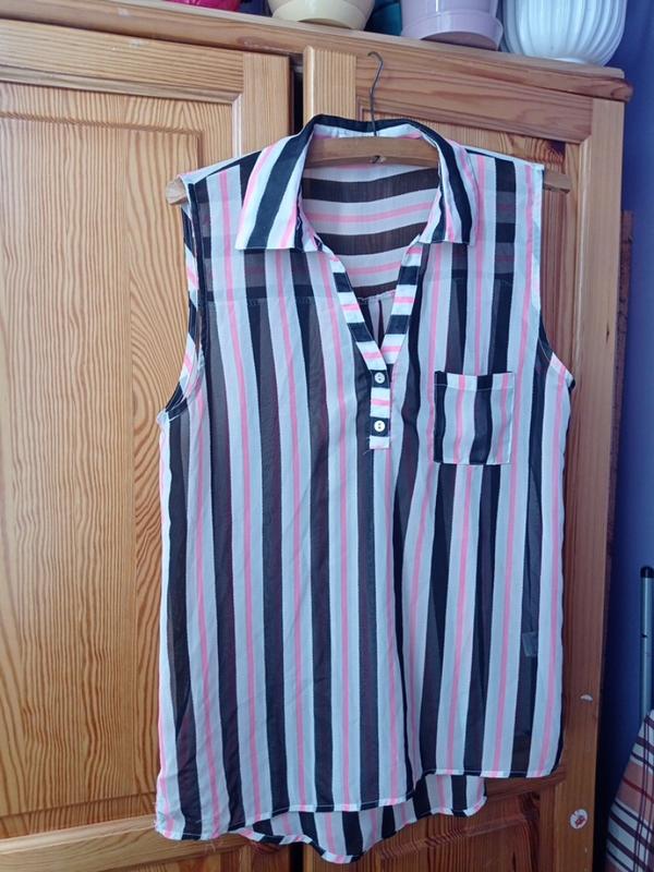 легка, літня блузка в поломку. кольори Білий, чорний і рожевий. зад довший пог 48 пот50 поб 51 довжина перед 68 довжина з-заду 71