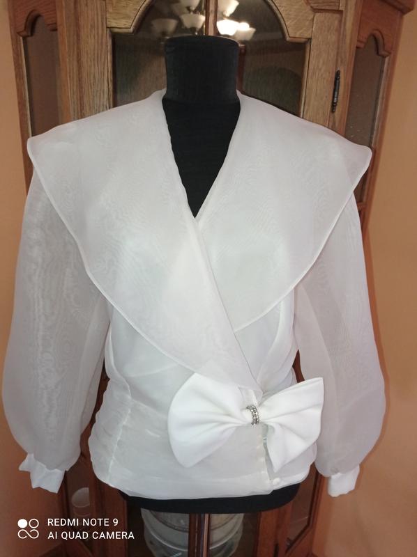 Шыкарная, винтажная блуза из органзы в новом состоянии, бирка срезана, подойдёт на L. Об.груди 51, об.талии 42, внизу 51, рукав 63, длина 60
