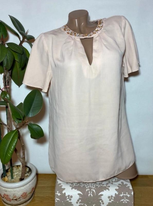 Симпатична блузочка,ніжного кольору. Легенька ошатна розмір 48-50 в грудях 100-106 див. довжина 65см.