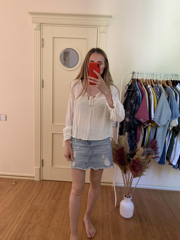 В хорошем состоянии легкая, летняя блуза. На размер с Сзади удлинённая. Замеры: Плечи; 36 см От подмышки к подмышкеяа 44 см Длина рукава: 58 см Длина спереди; 50 см Чищу семейный шкаф. Заходите в профиль, выбирайте.