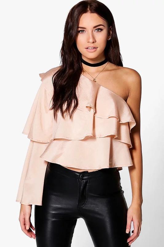 Блуза,топ ассиметричный,вечерняя,открытое плечо,воланы,рюши,большой размер, boohoo