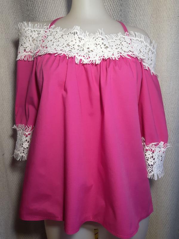 Яркая малиновая кружевная блузка, открытые плечи, топ женская блуза натуральная, мереживо...