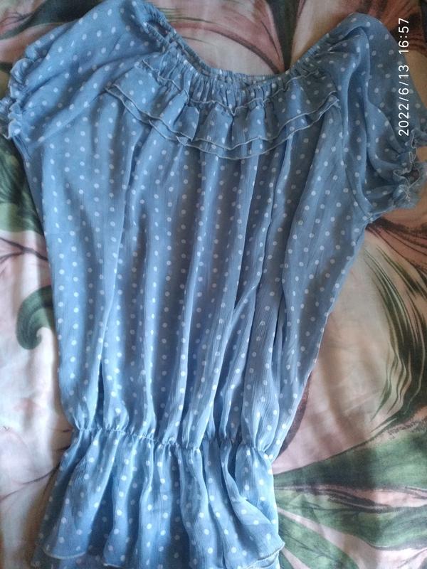 Легка, нежная, струящаяся идеально подойдёт как под юбку так и брюки. Круглый вырез на резинке можно спускать на плечи. Новая, но без бирки Длина 63 см. ПОГ 52 см. ПОТ 36 см.