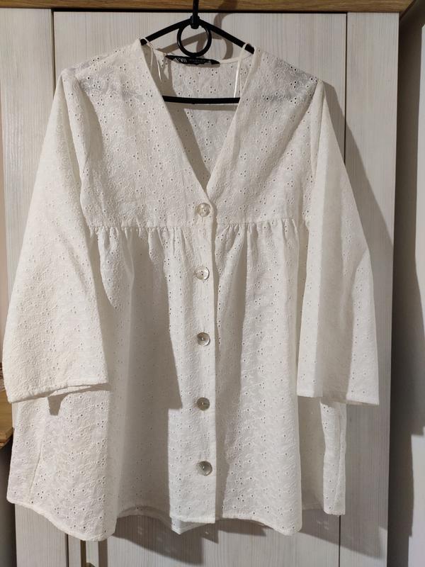 белая блуза из прошвы почти новая ОГ 50 плечи 37 длина 72 рукав 7/8