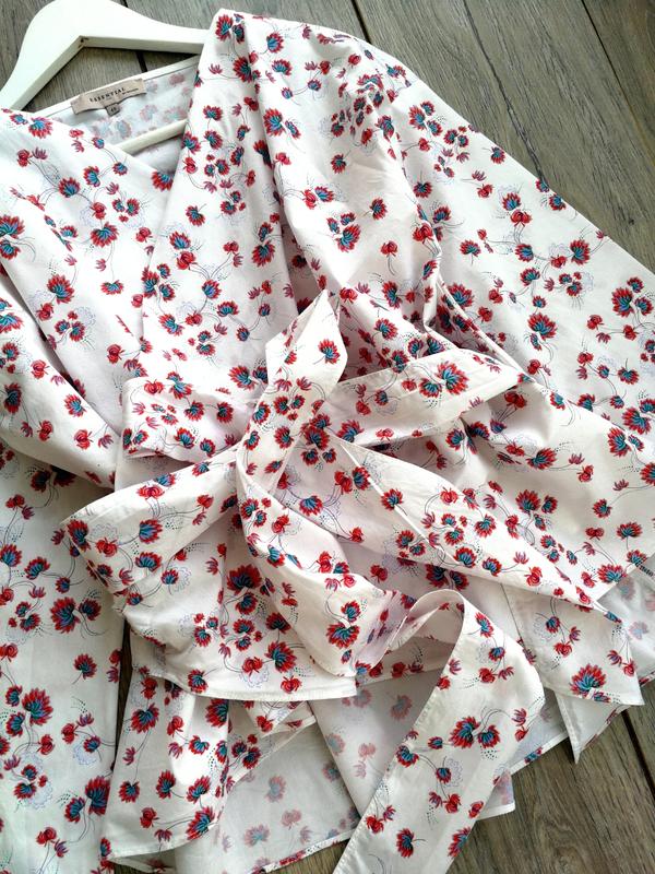 Шикарная блузка в японском стиле в цветочный принт на запах,размер универсальный от м до XL