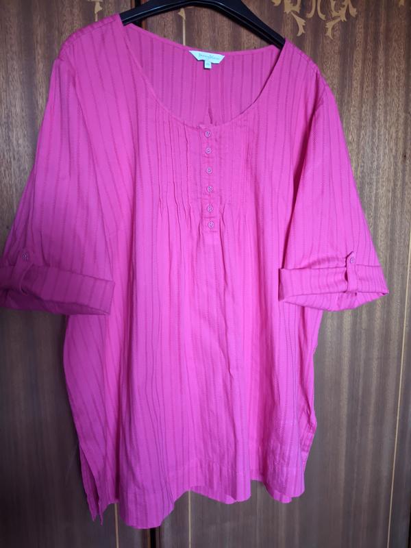 ярко розовая,по бокам разрезы,длину рукава можно регулировать, Коттон -100,пог -67см,поб-72см,пот-72см,сверху на пуговицах.