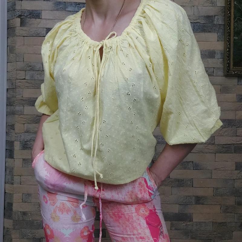 жовта блузка від Манго Розміри жовта С Заміри С: гр .55 см, довжина 65 см, рукав 49см Стан новп Штанці також в продажі