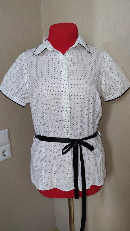 Продам белую блузку в черный горошек с поясом. Можно носить без него. Красиво смотрится к джинсам. Состав: 55% котон 45% полиэстер Производство Papaja Фото сделано на манекене 42 р., но блузка 46 р. Замеры в не растянутом виде: Длина 62 см Ширина плеч 33 см Длина рукава 18 см Пересылаю по Украине. Смотрите мои объявления, нажав на ссылку: "Все объявления автора". Есть еще одежда и обувь.