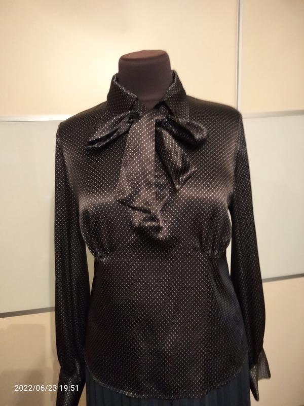 Блуза в мелкий горошек с роскошными рукавами , широкий манжет . Длина 60см , пог 49 см , пот 42 см , плечи 40 см , рукав 66 см .