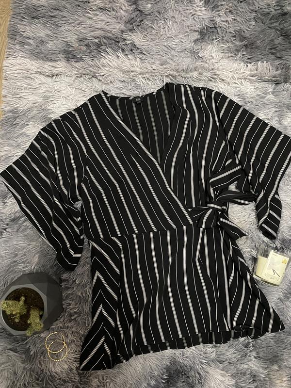 Блузка в полоску,на запах Розмір на бірці-16 Довжина -70 Напівобхват грудей-45 Напівобхват талії -40 Дефектів немає Стан хороший