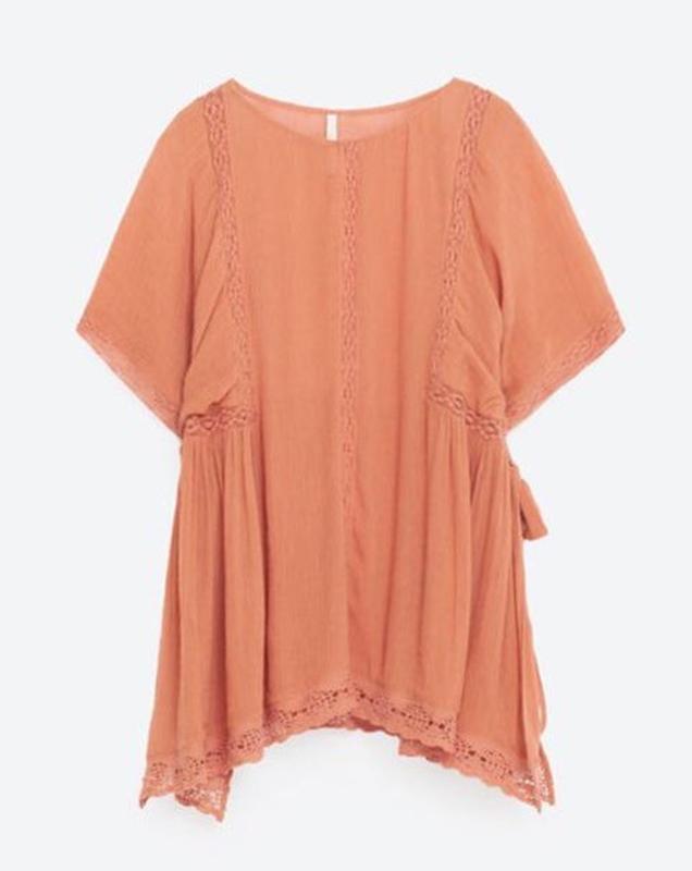 Бренд ZARA Свободная блуза, топ с открытыми боковыми сторонами и завязками. Боковые разрезы с бантиками на талии. Рукав свободное кимоно, внутри пришит нижний слой в форме майки. Кружева прошва. Материал - хлопок. Размер в наличии S. Подойдёт до размера XL Замеры: ПОГ внутри 54-55 ПОГ снаружи 58, ПОТ 57/58 (регулируется бантами), длина по спинке от плеча 65, плечо 28 Состав: основной состав 74% viskose, 26% cotton кружева 100% cotton Доставка: Предоплата на карту Приват банка. Наложенный платеж НП с авансом. Отправка Новой почтой, Укр почтой, почтой Justin, Meest