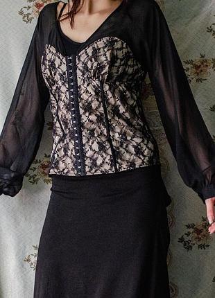 1 іншого продавця! На мені вона велика, в інтернеті інших фото немає для того, щоб показати на тілі. Жодного разу не носилася і в ідеальному стані, не підійшла по розміру. Розмір М, Довжина 57 ПОГ 41 Спереду корсет на металевих зачіпки, ззаду–на стрічках, можна затягнути по зручності. Рукава на гудзиках.