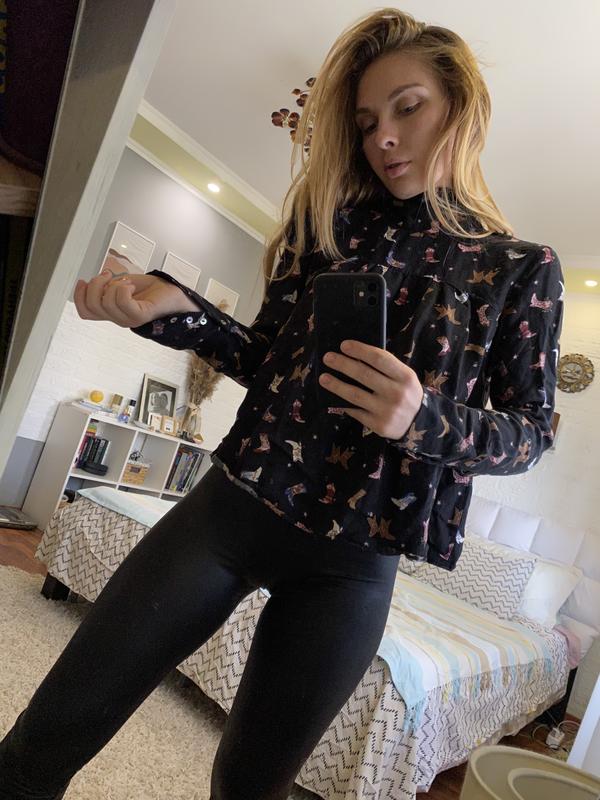 Стильна блуза ZARA з рукавом. Тканина дуже тоненька. Трендовий принт.