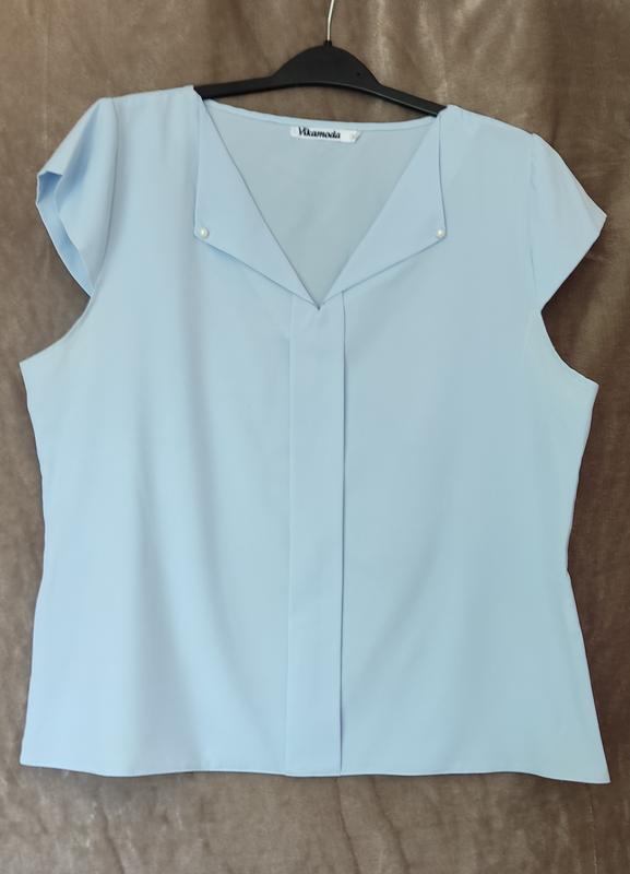 Літня блакитна блуза Напівобхват грудей 53 см, довжина 58см На другому фото показані плями
