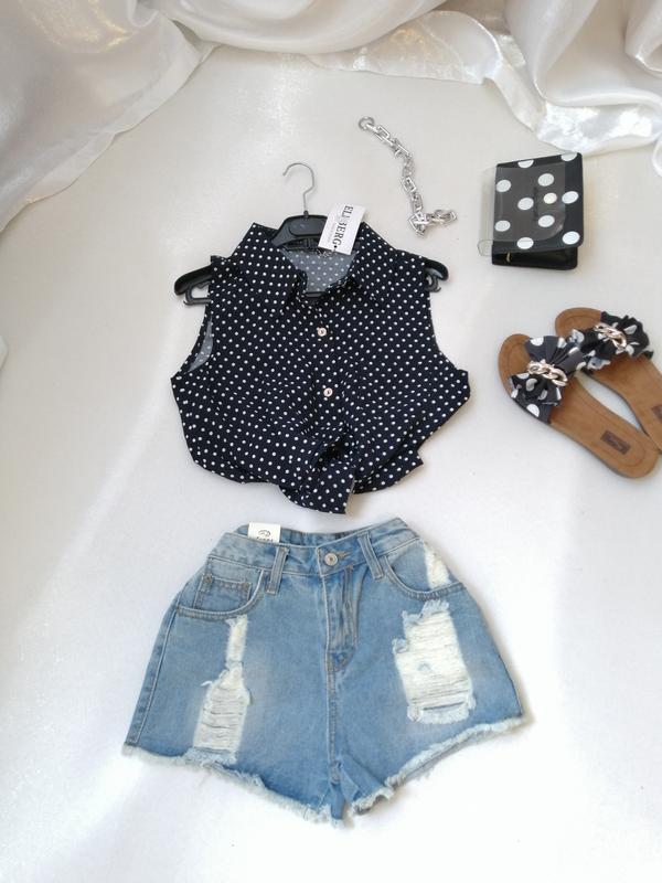 ✅ відмінно ніжна легка літня блуза сорочка без рукавів у дрібний горох колір темно-зелений...