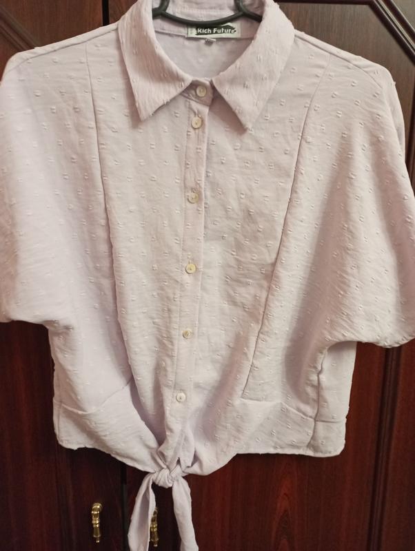 блузон жіночий бедровка ідеальному стані ніжно бузкового кольору без плям тканина жатка пів окружність грудей 52 пів об'єм талії 44 см довжина 47 см довжина рукава 35 см