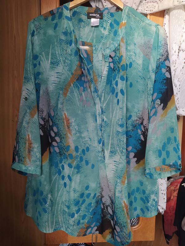 Блуза 46(54)розмір.Поліестер.Попереду планка з гудзиками .Рукав три чверті на гудзику .
