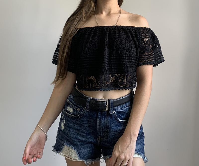 Блуза чорного кольору з мереживом, є підкладка, зверху на резинці ПОГ 40 Довжина 27