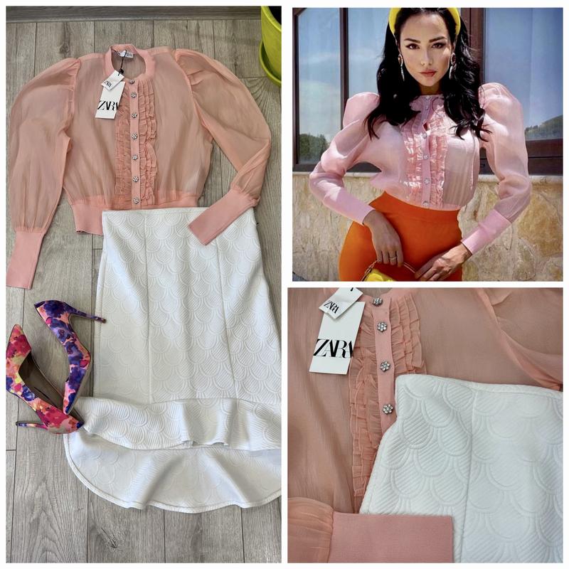 Wow набор на размер S Верх топ с органзы Zara, на бирке M, идёт на S Низ поплиновая юбка, длина 70 см, ПОТ 36 см. зад чуть длиннее, не носилось, сзади замок Цена за все 680 грн! Продажа набором!