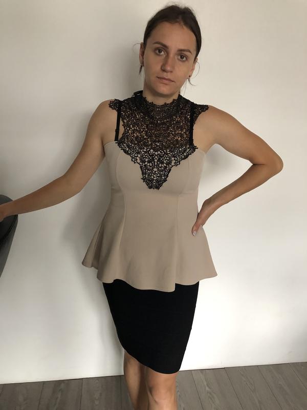 Блуза кремового кольору з чорним мереживом Довжина 70 см Груди 41 Талія 36 Бедра 61 Добре тягнеться