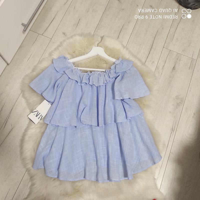 Блуза голуба, вільного крою, волани. 📍 Довжина 56. 📍Довжина рукава. 📍ПОГ 49-50. 📍 ПОБ вільні.