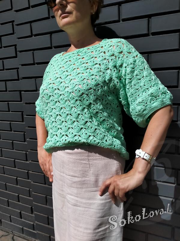 Літня,легка,власного виробництва.Мятний колір. Довжина по спині 58 см обхват у грудях 100-108 см рукав 40 см Доставка по всій Україні Укрпошта чи Нова пошта. Sokoliva.I Жіночий одяг створений власними руками. Кожна річ унікальна, та немає повтору. Нитки гарної якості із бавовни.Тільки на вишуканий смак.