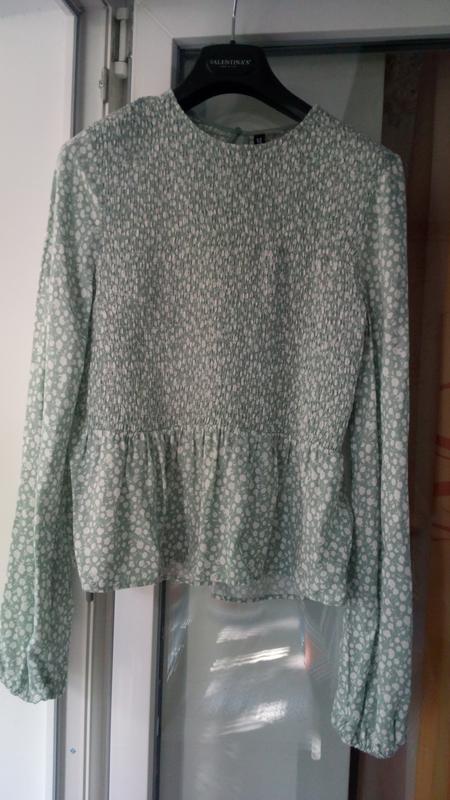 Легкая,воздушная блузочка.Смотрится романтично под высокую посадку джинс или юбки Длина изд 60см,а резинка от плеча донизу 42см,спереди и сзади. Пог 44 -50 см тянется легко Дл рукава 65см заканчивается резинкой.