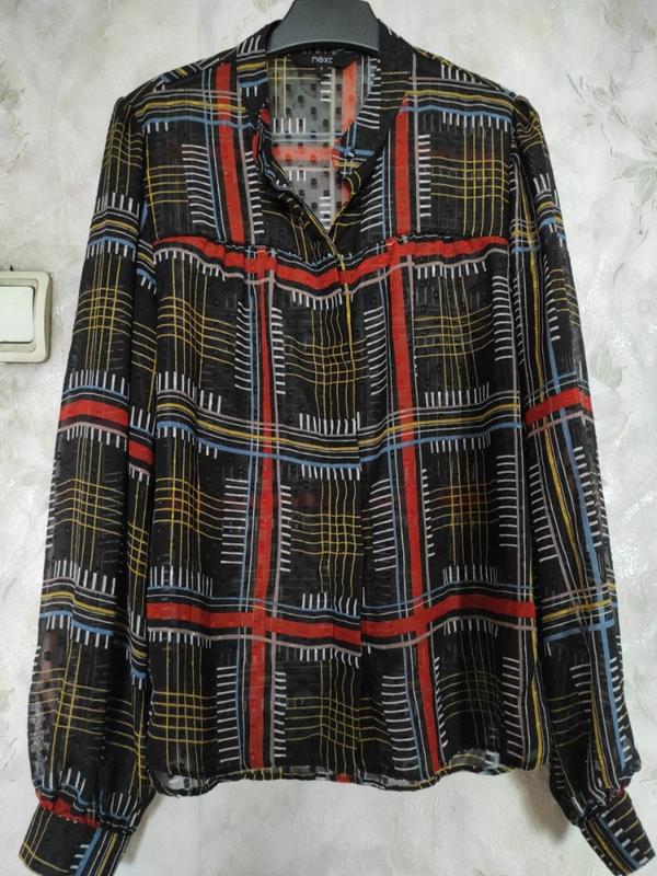 Шифонова напівпрозора блузка в принт. Розмір 36/8, наш 42-46. Довжина 65, рукав 65, плечі 35, ПОГ=ПІТ=ПОБІДИ 50 див. Стан ідеальний!