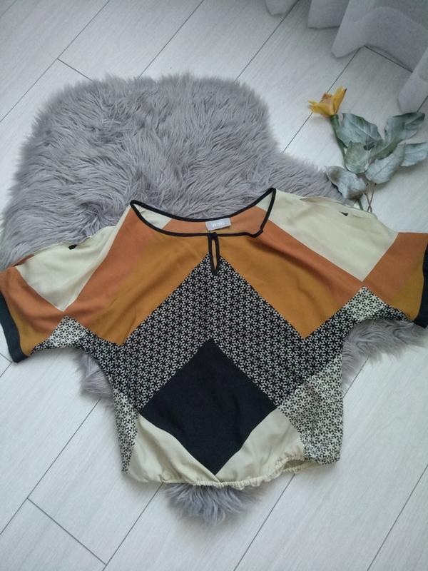 блузка цікавий яскравий принт довжина 60 см має резинку знизу пів'обєм в грудях 54 см пів'обєм в талії 50 см