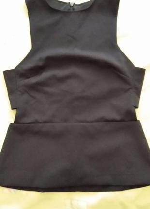 Блузка темно -синього кольору. телефон справжній колір не передає . Збоку є вирізи (на 2 фото видно). Не носила взагалі, не велика на мене. Бірки зрізані, сяде добре на повний С, М