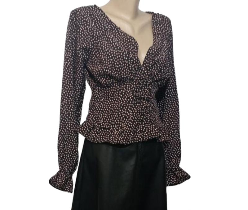 Блуза новая, сбоку застёгивается на молнию. Ткань тонкая. На бирке указано, что 100% полиэстер, но на полиэстер не похожа ткань, больше на вискозу. Размер указан UK 10, EUR 38. 🌼 ПОГ 49 🌼 ПОТ 39 🌼 ПОБ 42 🌼 длина рукава от горловины 68 🌼 длина 50