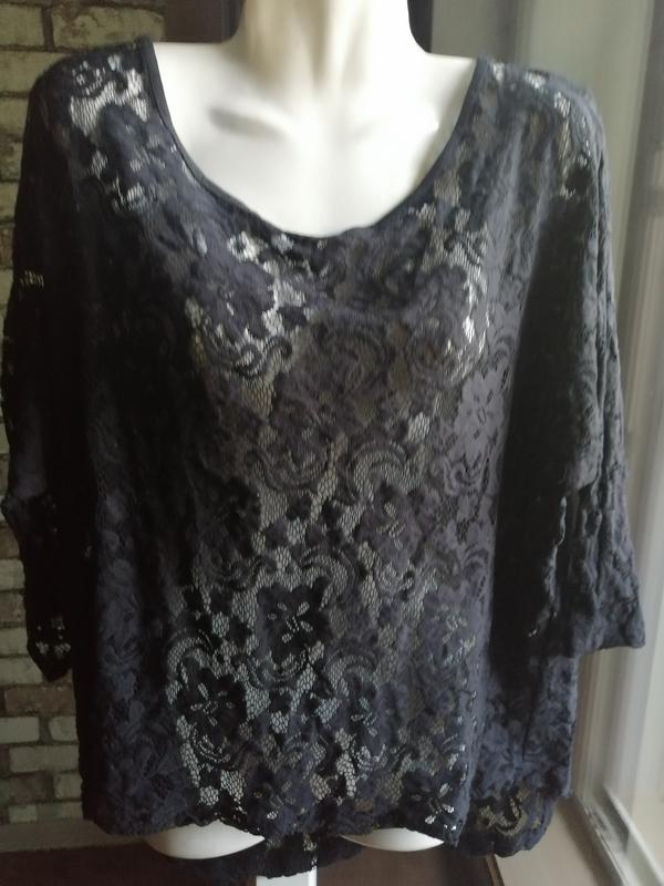 Материал выглядит очень изысканно, элегантно и дорого. Благодаря жесткости, гипюр хорошо держит форму. Перед немного короче Длина 58/62 Плечи 44 Ширина 60 Рукав от ворота 50,заужен Ткань мягкая, хорошо тянется