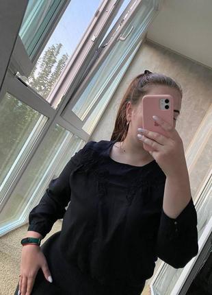 Дуже красива чорна блуза South 18 розміру. Дуже красива в'язання на грудях, пуговочки на рукавчиках, внизу блуза на резинці. Параметри: ПОГ-58см, ПОТ-56см, ПОБІДИ-44-71см, довжина-56см, довжина рукавчика-55см. Додатково призвела параметри на фото🌼🌼🌼