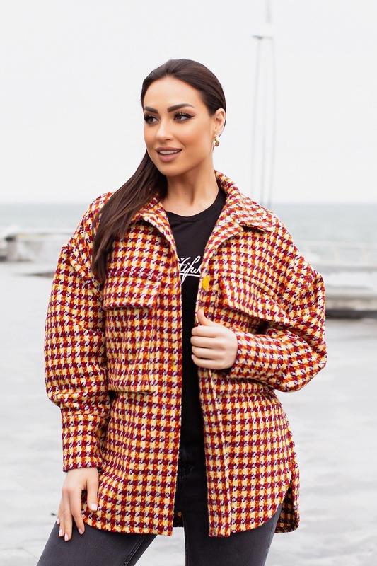 Арт. 5-275 Размер: 1 (42-46), 2 (46-50) Описание: Рубашка пальто из шерсти (камвольная ткань). Застежка 4 пуговицы. На груди объемные накладные карманы с клапанами. Рукава с манжетами на 1 пуговицу. Спинка удлиненная.