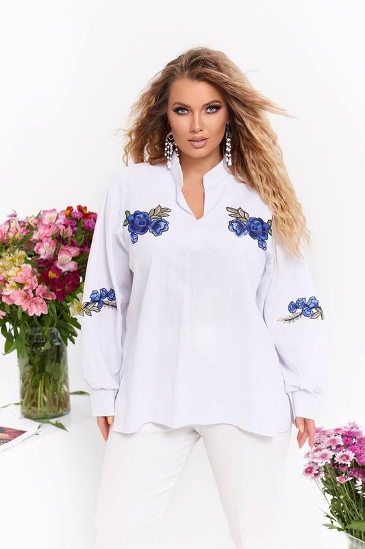 Сорочка,, Квіти‘‘ 002007 Тканина натуральний льон Колір білий Розмір: 48-50,52-54,56-58,60-62 Ціна 645 грн На моделі розмір 48-50 квіти , пришивна аплекація Виміри 48-50 Обхват грудей 122 Обхват стегон 124 Довжина виробу 170 Довжина рукоя 0,59 42-54 Обхват грудей 126 Обхват стегон 128 Довжина виробу 170 Довжина рукоя 0,59 56-58 Обхват грудей 130 Обхват стегон 132 Довжина виробу 170 Довжина рукоя 0,59 60-62 Обхват грудей 132 Обхват стегон 134 Довжина виробу 170 Довжина рукоя 0,59