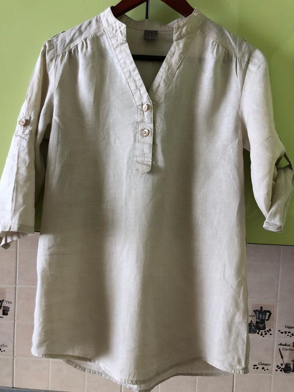 Жіноча блуза з натуральної тканини ( льон). Рукав фіксується ґудзиком, комірець стійка. Розмір 8