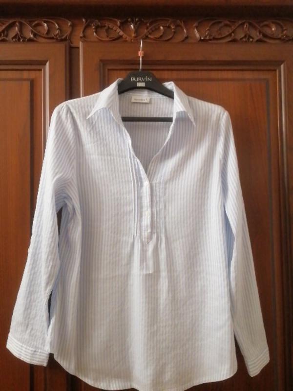 Пуговки функциональны, можно подвернуть рукав Приятная к телу, хорошо тянется, цвет очень нежный, есть легкий металлический отблеск Пог 53, длина от плеча 71, длина рукава 61