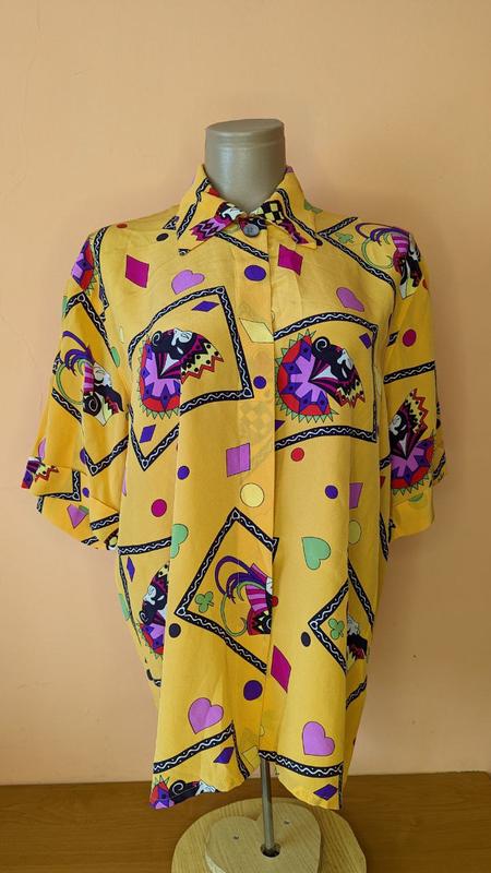 100% шёлк Размер M Замеры в спокойном состоянии Длина изделия 68 см Ширина плеч 47 см Полуобхват груди 56 см Полуобхват по низу 54 см Длина рукава: внешн. ч. 26 см, внутр. ч. 15 см На внутренней подкладке (снаружи их нету) следы от плечиков, на последнем фото показала. Оформить покупку можно через кнопку Купить или скинув мне данные для отправки посылки. Оплата на банковскую карту или Безопасная оплата. *50*